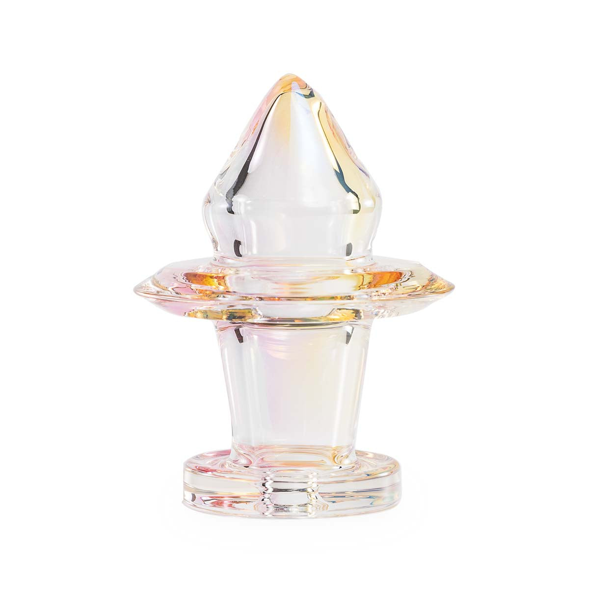 The Sunset Directional Carb Cap boosts the efficiency and effectiveness of your Dr Dabber Switch vaporizer. Its intake hole creates a cyclone effect as you inhale that increases resistance, producing denser, tastier vapor. This handblown, iridescent carb cap provides an improved experience and looks great atop your Switch vaporizer.