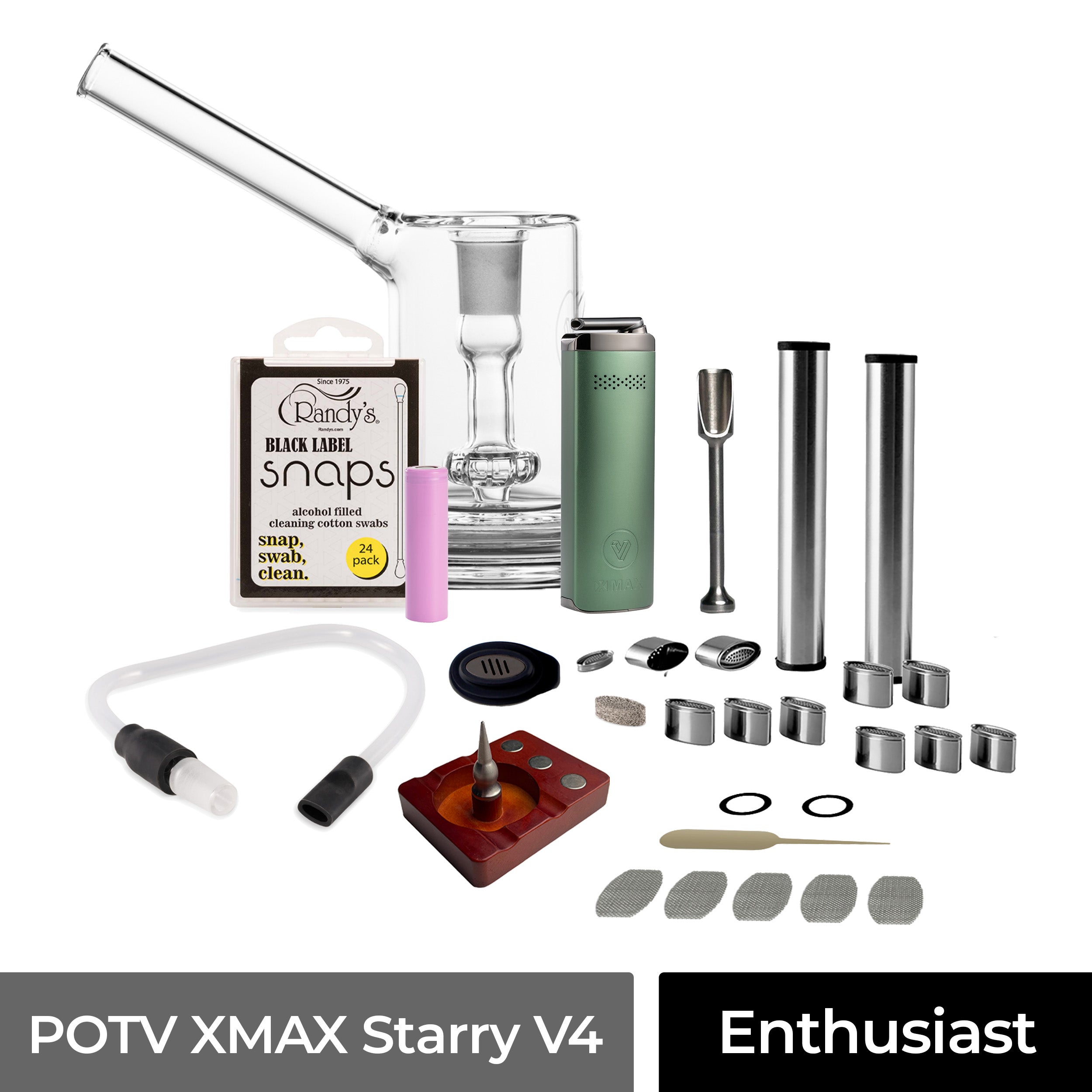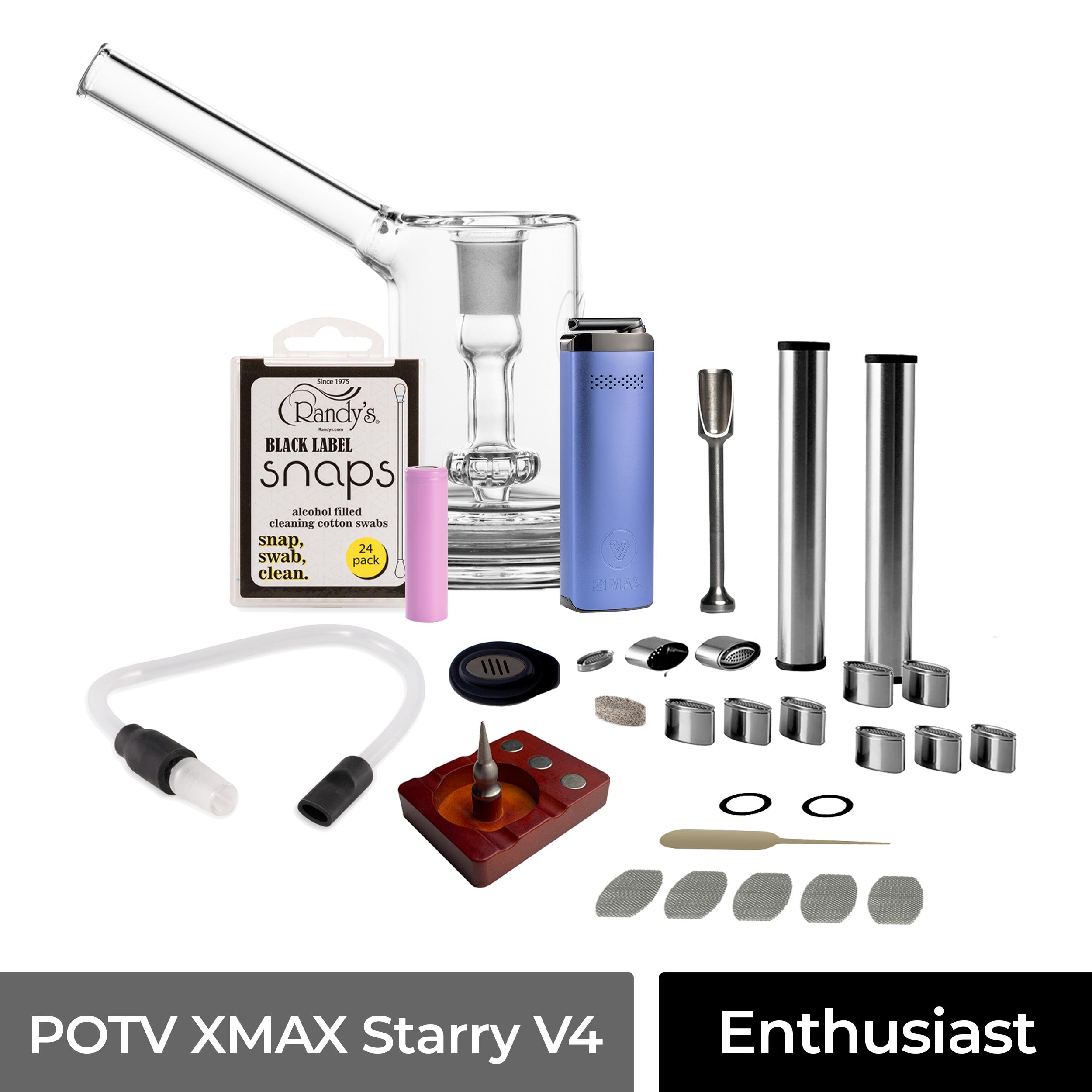 The POTV XMAX Starry V4 Enthusiast Vaporizer Kit is for the seasoned user who’s ready to pick up the Starry V4 vaporizer with an accessory kit designed to take their sessions to the highest level. Enhance every puff with our signature POTV accessories, must-have additions, and more.