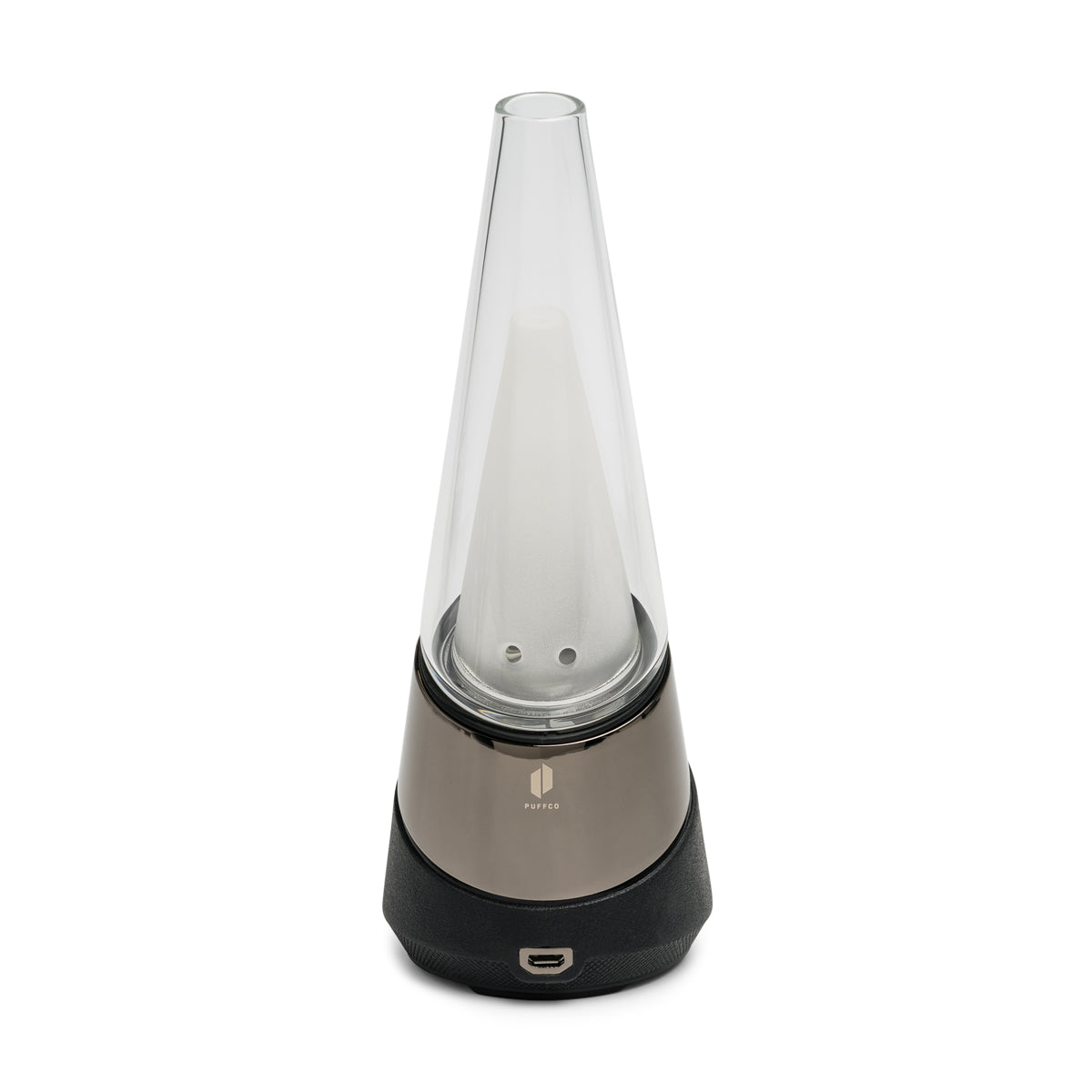 The Puffco Peak is an electronic smart rig that vaporizes concentrates. This is NOT a dry herb vaporizer. With four preset temperatures above 450°F (232°C) and a concentrate-style oven, the Peak is to be used with concentrates only.