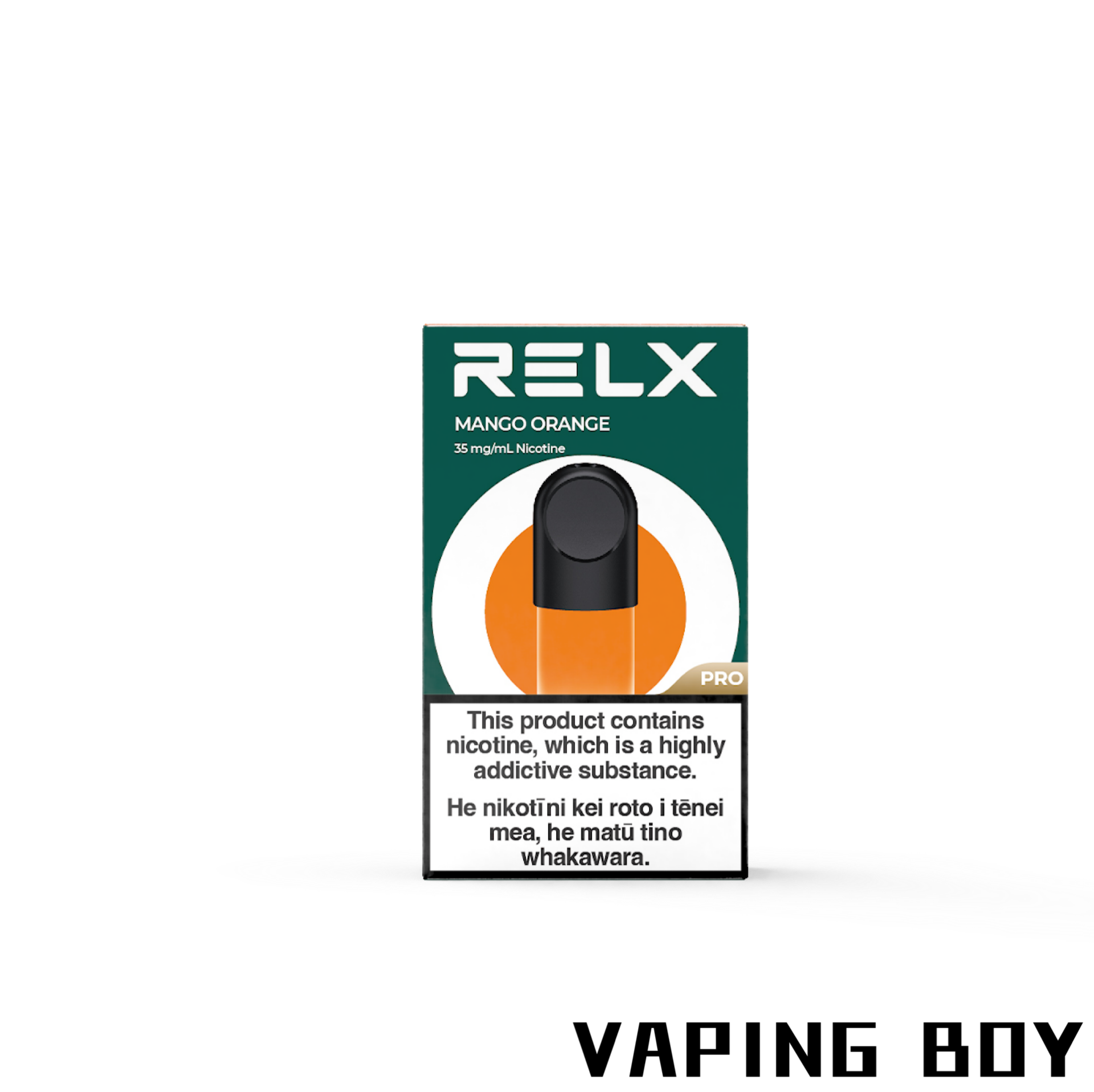 • RELX Pod Pro Mango Orange is a vape pod with mango orange mix fruit flavor.