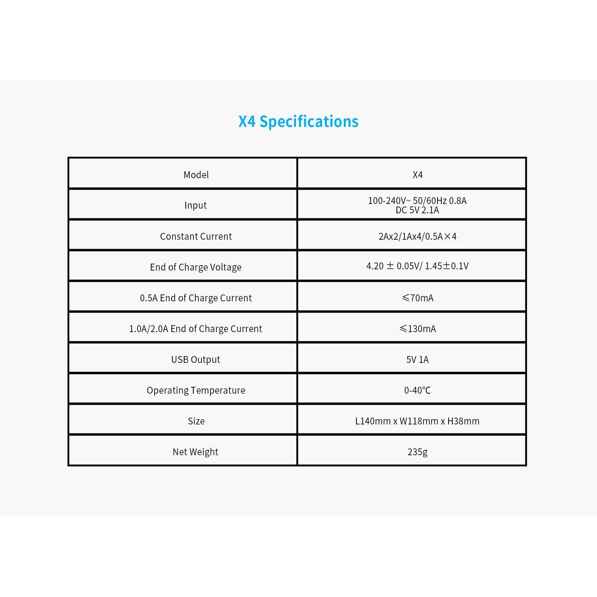 • X2 or X4 Battery Charger